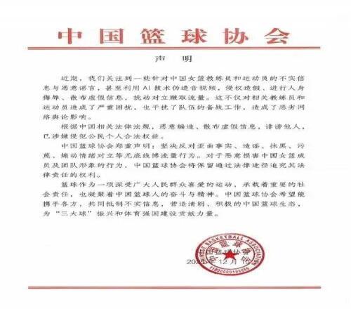 利用AI造谣“中国女篮”,两男子被公安机关刑拘