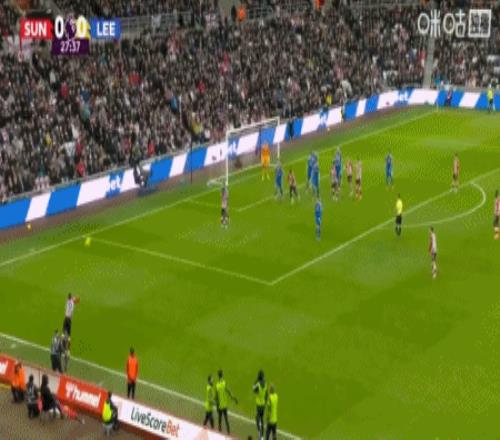 第28分钟,扎卡斜塞,阿丁格拉兜射破门,桑德兰1-0利兹联