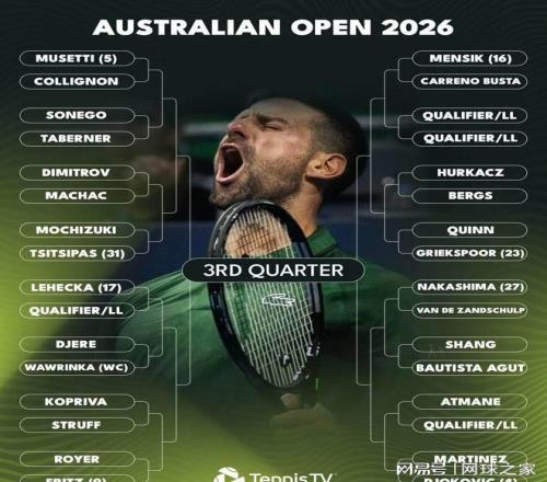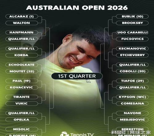 备受关注的澳网抽签今日正式揭晓,让我们看看这项开年大满贯男子单打的签表情况。